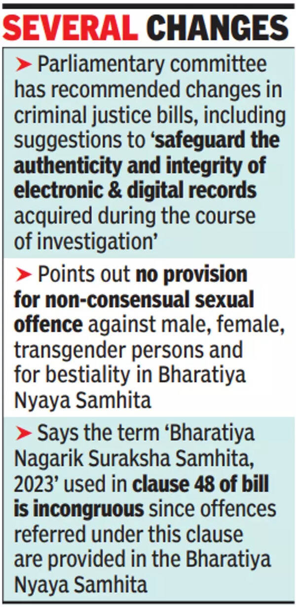 In its reports, the House panel had recommended a slew of changes, including suggestions to “safeguard the authenticity and integrity of electronic and digital records acquired during the course of investigation”.
