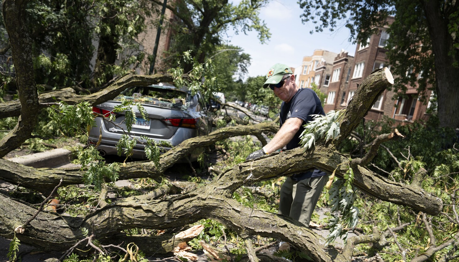 Ortiz’s intersection of Hoyne Avenue and Huron Street was blocked by downed trees in multiple directions. To his relief, no one was injured but dozens of cars had windows shattered and front yards were filled with broken trees.