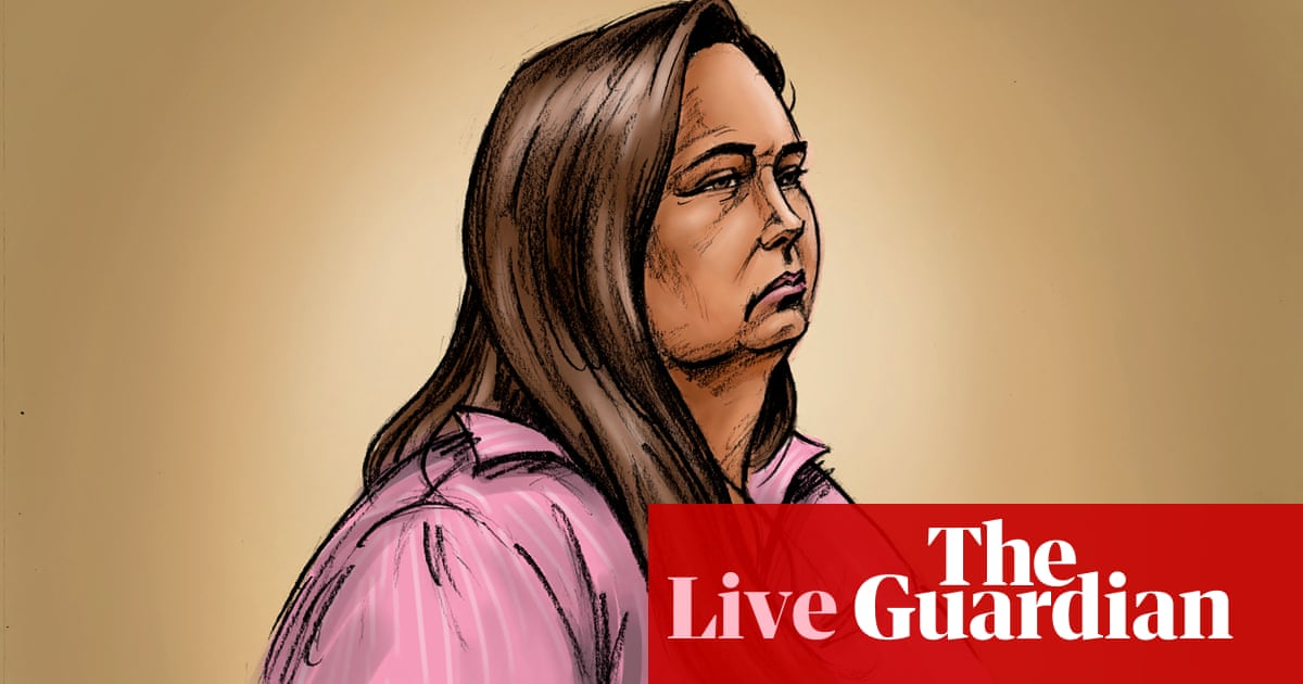 “,”elementId”:”0f77ec31-8270-4708-99a4-72f37b7257e8″}],”attributes”:{“pinned”:false,”keyEvent”:true,”summary”:false},”blockCreatedOn”:1746410272000,”blockCreatedOnDisplay”:”02.57 BST”,”blockLastUpdated”:1746413939000,”blockLastUpdatedDisplay”:”03.58 BST”,”blockFirstPublished”:1746410800000,”blockFirstPublishedDisplay”:”03.06 BST”,”blockFirstPublishedDisplayNoTimezone”:”03.06″,”title”:”Simon Patterson denies asking Erin ‘is that what you used to poison them?'”,”contributors”:[],”primaryDateLine”:”Mon 5 May 2025 05.48 BST”,”secondaryDateLine”:”First published on Mon 5 May 2025 01.38 BST”},{“id”:”68180e058f08c2e1abc7aee8″,”elements”:[{“_type”:”model.dotcomrendering.pageElements.TextBlockElement”,”html”:”